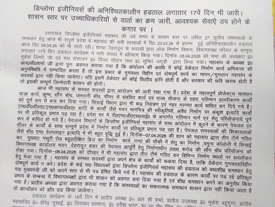 डिप्लोमा इंजीनियर्स की अनिश्चितकालीन हडताल लगातार 17वें दिन भी जारी